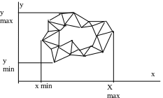 Информация об СКЭ задается в виде массивов координат узлов и массива связи узлов в элементы. Всю область или выделенный ее фрагмент заключим во вспомогательный прямоугольник.