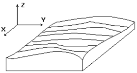 8. Изометрическое изображение двумерной функции. Такого рода изображения обладают хорошей наглядностью. Однако следует учесть, что для лучшего выявления характера изменения функции следует предусмотреть возможность поворота изображения вокруг осей.