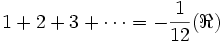 The sum S appears to take the form of ζ( − 1). However, −1 lies outside of the domain for which the Dirichlet series for the zeta-function converges. However, a divergent series of positive terms such as this one can sometimes be summed in a reasonable way by the method of Ramanujan summation (see Hardy, Divergent Series.) Ramanujan summation involves an application of the Euler-Maclaurin summation formula, and when applied to the zeta-function, it extends its definition to the whole complex plane. In particular