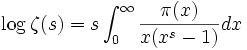A similar Mellin transform involves the Riemann prime counting function J(x), which counts prime powers pn with a weight of 1/n, so that