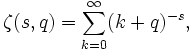 which coincides with Riemann's zeta-function when z = 1 and q = 1.