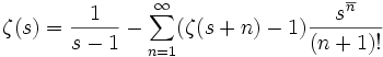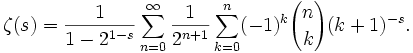 A globally convergent series for the zeta function, valid for all complex numbers s except s = 1, was conjectured by Konrad Knopp and proved by Helmut Hasse in 1930: