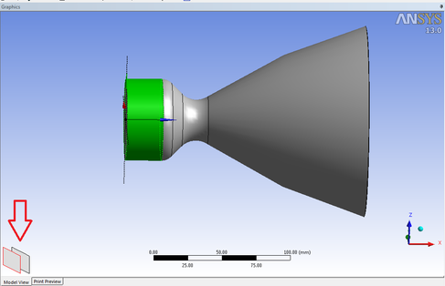 Таким образом, мы построили тело течения внутри сопла. Осталось создать геометрию тела внешнего течения за соплом. Для этого создадим ещё один эскиз в плоскости XY.