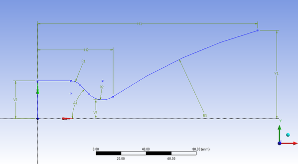 После простановки размеров, из значения устанавливаются в окне «Details View» (окно 4 на рисунке 3.2.2). Как только мы установили на нашем эскизе размер выходного сечения сопла, он появился в окне «Details View» под названием V1. Данное название можно изменить, если выбрать в области построения размер и нажать ПКМ, а затем выбрать из контекстного меню команду «Edit Name/Value» («Редактировать имя/значение размера»).