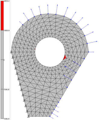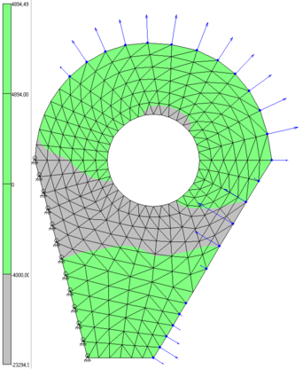 Красным цветом обозначены положительные, а синим - отрицательные напряжения, лежащие в диапазоне [-∞;-11500] ∩ [19000; +∞].
