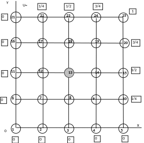 Точное решение рассмотренной задачи U(1/2, 1/2)=0,25.