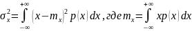 Для случайной величины Х с непрерывным распределением вероятностей, характеризуемым плотностью вероятности р(х), дисперсия вычисляется по формуле: