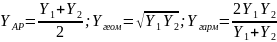 Для того, чтобы выбрать теперь вид аналитической зависимости, которая наилучшим образом соответствует исходным экспериментальным данным, поступим следующим образом. Выполним промежуточные вычисления. На области определения независимой переменной (мы ранее условились, что это будет хi) выберем две точки, достаточно надежные и по возможности как можно дальше отстоящие друг от друга. Обозначим их Х1 и Х2. Этим точкам соответствуют значения Y1 и Y2. Найдем теперь среднее арифметическое, среднее геометрическое и среднее гармоническое для выбранных точек: