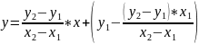 Выберем на построенном графике две произвольные точки М1(х1,у1) и М2(х2,у2). Из аналитической геометрии известно, что уравнение прямой будет:
