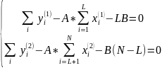 Для определения А и В разобьем все данные на две группы так, чтобы сумма алгебраических уклонений каждой группы от среднего была бы равна нулю. Иными словами среднее для одной группы точек было бы равным (или не очень сильно отличалось) среднему другой группы точек. Тогда для каждой группы запишем: