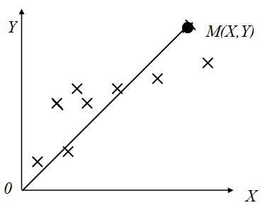Проведем прямую как можно ближе к нанесенным точкам (рис. 1) и выберем на этой прямой произвольную точку М(Х,Y).