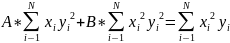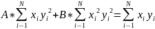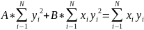 В силу необходимого условия экстремума функции находим частные производные функции F по неизвестным коэффициентамА и В и приравниваем их к нулю, откуда получаем систему: