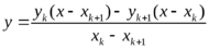 Простейшим видом интерполяции является линейная интерполяция, в основе которой лежит аппроксимация кривой на участке между точками (хk, yk) и (xk+1, yk+1) прямой, проходящей через те же точки (см. рисунок). Уравнение прямой можно представить в виде