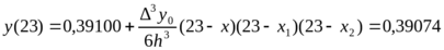 Требуется найти у при х = 23° методом разделенных разностей. С помощью, исходных данных составим таблицу разностей.
