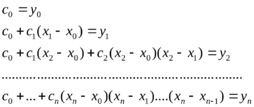 описывающего кривые, проходящие через точки (x0, y0), (x1,y1),(x2 ,y2)и (xi,yi).. Продолжая этот процесс, будем получать значения
