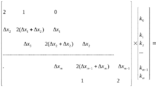 Следовательно, при таком выборе кубических многочленов автоматически удовлетворяются все условия, кроме условий, налагаемых на вторые производные. Последние выражаются для внутренних точек
