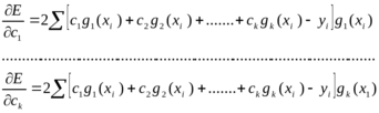 Так как элементы матрицы в левой части и вектора-столбца правой определяются табличными данными, то выписанная система k линейных уравнений с k неизвестными может бы решена.