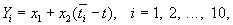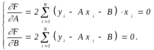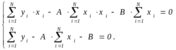 поэтому ai1 = 1, ai2 = ti - t (согласно предположению о равноточности наблюдений, все pi = 1). Так как