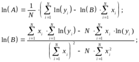 Согласно этому методу А и В должны быть определены так, чтобы выполнялось условие минимума функции