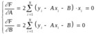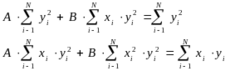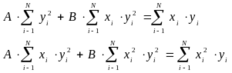 В силу необходимого условия экстремума функции находим частные производные функции F по неизвестным коэффициентам А и В и приравниваем их к нулю, откуда получаем систему