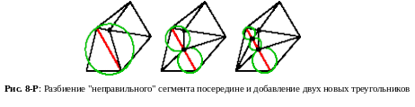даляется треугольник, которому принадлежал первоначальный сегмент и добавляются два новых треугольника (см. рис. 8-Р).