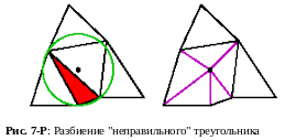 даляется треугольник, подлежащий разбиению и прилегающие и добавляются новые, как показано на рисунке 7-Р.