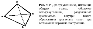 уть ее заключается в следующем. Два треугольника, имеющие общую грань, образуют четырехугольник, разделенный диагональю. Внутри такого образования диагональ имеет два возможных положения. На рисунке 9-Р показаны эти положения — отрезки ac и bd.
