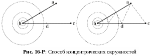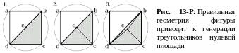 ля ликвидации подобных ситуаций автор алгортима предложил эвристическое правило: делить в таких случаях сегмент не посередине, а на ближайшей точке пересечения этого сегмента и концентрических окружностей с центрами в вершине угла (см. рис. 16-Р). Радиус каждой последующей окружности ровно вдвое больше радиуса предыдущей, а первая окружность берется произвольно, но достаточно малой, например r0 = 0.01. То есть радиус каждой i-ой окружности равен ri = r0 2 i.