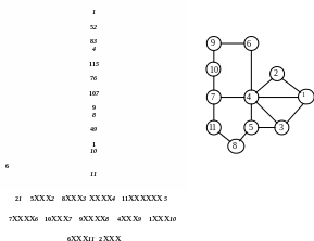 Ниже приведен простой пример, иллюстрирующий уменьшение ширины ленты матрицы путем перенумерования вершин соответствующего графа. После изменения номеров вершин графа , который соответствует матрице В, получается граф