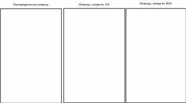 Форма представления результатов по Кр.6 показана ниже на примере неупорядоченной матрицы, матрицы после упорядочения прямым и обратным алгоритмами Катхилла и Макки, а также соответствующим им множителем L.