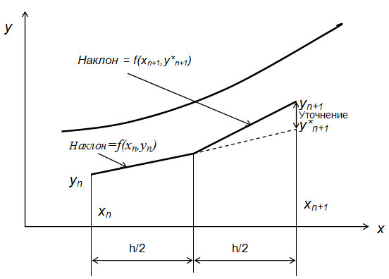 . Вычислив среднее между значением производной и ее значением в начале интервала, найдем более точное значение