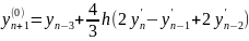 Этот метод также имеет четвертый порядок точности. Используемая в нем формула прогноза получена интегрированием обратной интерполяционной формулы Ньютона и имеет вид:
