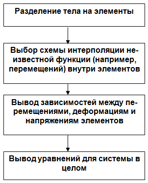 Для лучшего понимания идеи МКЭ сначала покажем основные этапы его применения на примере расчета напряженно – деформированного состояния тела (решения задач механики сплошных сред), хотя это можно было бы сделать на примерах термодинамики, аэродинамики, электростатики и т.п.