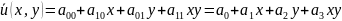 Решение: Число узловых неизвестных r = 4m2 = 4, а показатель степени полинома n = 2m-1 = 1. Следовательно, интерполирующий полином должен иметь вид: