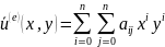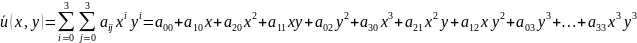 Решение: Число узловых точек r = 4m2 = 16, а показатель степени полинома n = 2m-1 = 3. Следовательно, интерполирующий полином для функции u(x,y) должен иметь вид: