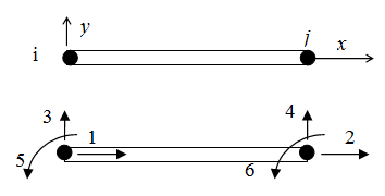 – есть система усилий, возникающих в узлах элемента при единичном перемещении узла i в направлении x (в направлении 1)