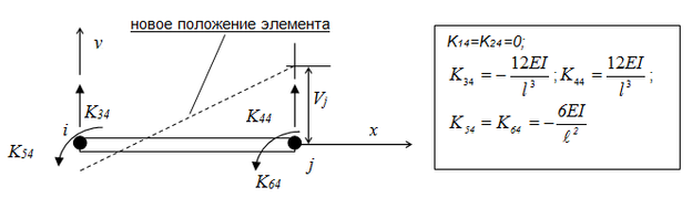 Поэтому при перемещении узла элемента балки в направлении оси Y на единицу возникнет не только силовая реакция,