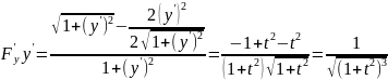 Fy’y’y”=0, y”=0, y=C1x+C2, т.е. кривая наименьшей длины, проведенная между двумя точками, есть прямая.