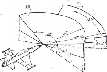 Радиолокатор (РЛ) самолета-истребителя предназначен для поиска, обнаружения и определения угловых координат, дальности и скорости целей, находящихся в заданной области пространства (зоне обзора), имеющей вид, показанный на рис. 1.1. Сначала поиск ведется в наиболее опасной ближней зоне БЗ, включающей дальности от