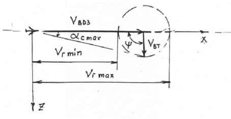 . Поэтому горизонтальная скорость самолета относительно земной поверхности может меняться от Vг.min до Vг.rnax . При этом меняется и угол сноса самолета