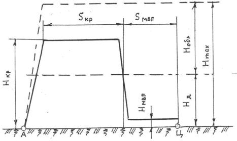 Возможная траектория полета штурмовика показана на рис. 3.2. После вылета из пункта А самолет следует в район боевых действий в наиболее экономичном крейсерском режиме, а в зоне действия средств противовоздушной обороны противника переходит в режим маловысотного полета (МВП), когда он летит к цели Ц на предельно малой высоте. В некоторых ситуациях возможен и кратковременный полет в максимальном режиме.