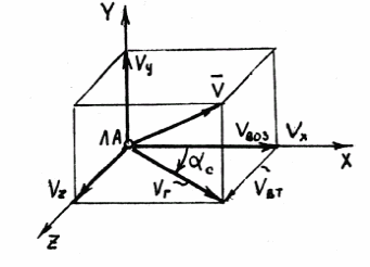 Доплеровские измерители скорости (ДИС) предназначены для определения вектора полной скорости V подвижного объекта или составляющих этого вектора Vг, Vx, Vy и Vz (рис. 3.1) по измеренным доплеровским сдвигам несущей частоты нескольких отраженных от земной поверхности сигналов. На рис. 3.1 через Vвоз обозначена воздушная скорость ЛА, а через Vвт - скорость ветра; с - угол сноса. Ось Х совпадает с продольной осью ЛА. Типовые задания на проектирование самолетного (КП-23) и вертолетного (КП-24) ДИС приведены в Приложении Π 2.
