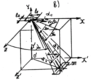 Ориентация лучей в связанной с ЛА системе координат XYZ определяется установочными углами B0 и Гο (рис. 3.2,в). Первый из них - угол между плоскостью ХOZ и линией ОМ, соответствующей максимуму луча ДНА, а второй - угол между продольной осью ЛА (ось X) и проекцией ОМ на плоскость ХОZ. Величины Bο и Г0 однозначно определяют установочные углы – 0 и 0, измеряемые в плоскостях ХOM и ZОМ соответственно (точка Μ является центром отражающей площадки ОП на земной поверхности).