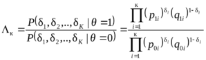 , если δi = 0 , и сравнению суммы в порогами lnΛН и lnΛВ .