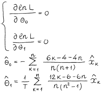 Максимум функции правдоподобия находим, решая систему уравнений: