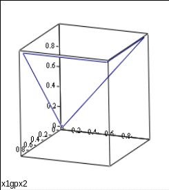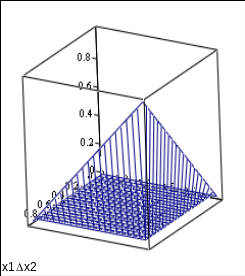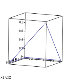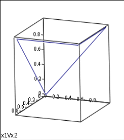 Кроме того, если использовать симметричность аксиомы Т2, то на стороне x1=1 получается прямая линия x1x2=x2, а на стороне x1=0 - линия в плоскости x1x2=x2. Таким образом значения x1x2 в четырёх вершинах единичного куба являются также значениями чёткой операции И. К тому же из аксиомы Т2 очевидно, что график симметричен относительно плоскости, образуемой наклонными x1=x2.