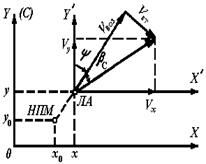 а) б) Рис.1.2 Составляющие вектора скорости ЛА (а) и функциональная схема системы счисления пути (б)