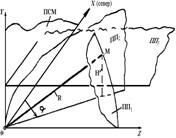 В качестве датчика системы счисления применяют доплеровский измеритель скорости ДИС (рис. 1.2,б), что и определяет название такой системы – доплеровская навигационная система. (Информация о скорости ЛА может быть получена также от инерциальной навигационной системы.) С помощью ДИС обычно измеряют модуль вектора скорости Vr в горизонтальном полете (путевая скорость), представляющий собой сумму векторов воздушной скорости Vвоз и скорости ветра Vвт, и угол сноса с, т.е. угол между продольной осью ЛА и направлением вектора Vr. Вычислительное устройство определяет продольную При известном курсе ЛА могут быть получены составляющие скорости Для определения текущих координат ЛА в систему вводят координаты Доплеровская навигационная система не нуждается в наземных станциях. Главной ее особенностью является ухудшение точности определения местоположения со временем, что объясняется интегрированием погрешностей ДИС. Погрешность определения местоположения в системах счисления составляет 1,5% от пройденного пути для доплеровской навигационной системы. Позиционный метод. Он основан на использовании поверхностей или линий положения для определения местоположения объекта. Поверхность положения представляет собой геометрическое место точек в пространстве, соответствующих одному значению W, т.е. одному значению дальности, угла и т.п. Местоположение объекта находится как точка пересечения трех поверхностей положения (ПП). В местной системе координат (рис.1.3,а) в предположении, что объект расположен в точке М такими поверхностями положения обычно являются ПП1 (W1=R=const), ПП2(W2=α=const) и ПП3 (W3=Н=const).