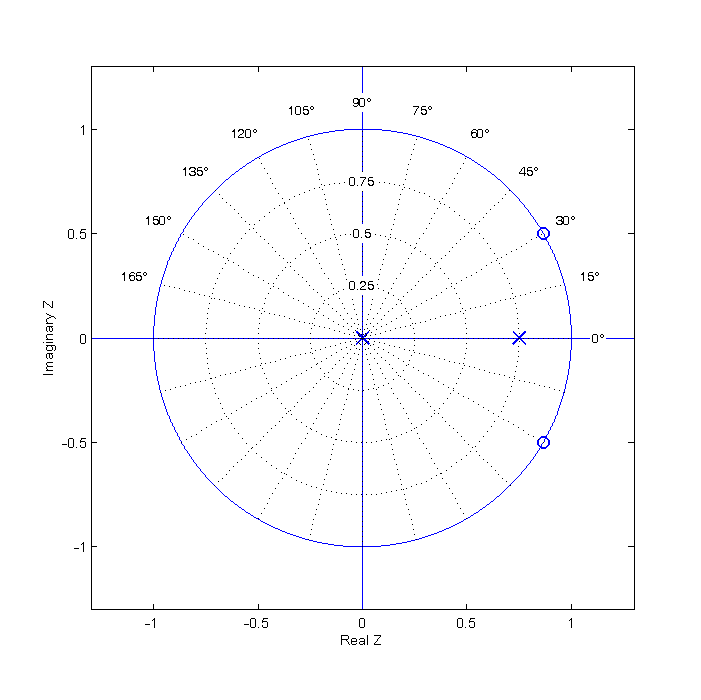 Определить положение нулей и полюсов фильтра, тип фильтра, граничные частоты