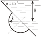 адача 28 Определить полную силу, действующую на полусферическую крышку, закрывающую круглое отверстие в стенке, наклоненной под угломЗ